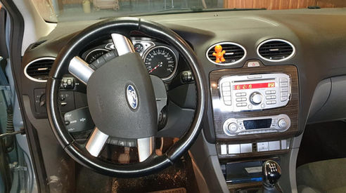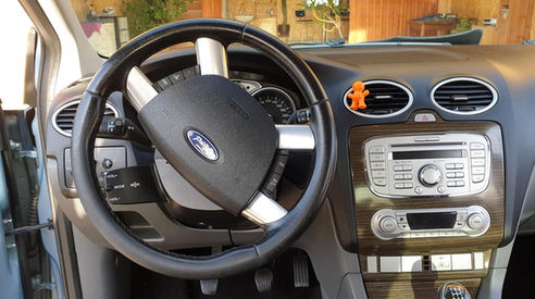 Un nettoyage intérieur complet d'une Ford Focus avec des poils de chiens dans le coffre.